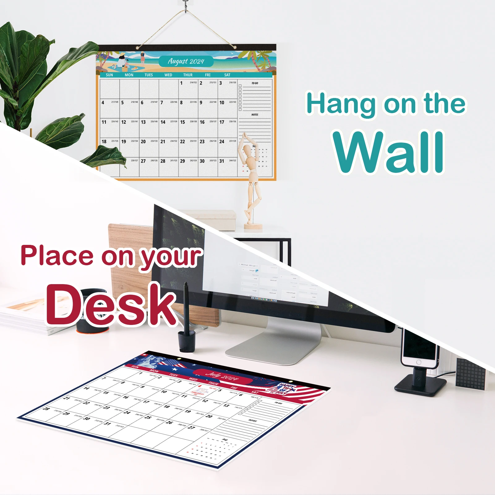 2024 Large Wall Calendar Desk Calendar with To do list and Notes