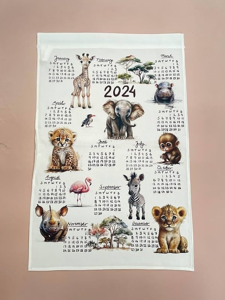 Amazon.com: Cute Safari animals 2024 Calendar Towel, Linen
